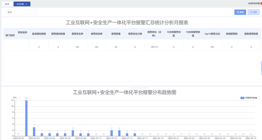 统计分析 报警KPI 平均报警率 报警平稳率 报警处置率 重复报警 常驻报警 闪烁报警 相关性分析 报警次数排名、占比、报表